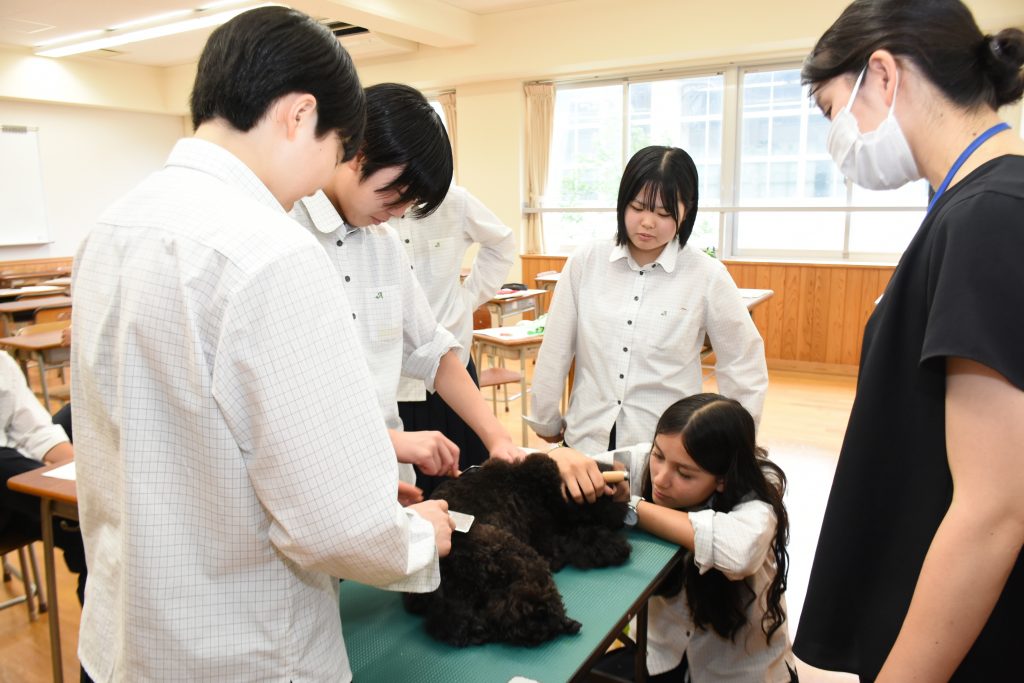 7月12日(金)、1年生の職業体験講座が行われました。生徒は、言語や保育、スポーツ、ペットなどの分野に分かれ、大学や専門学校から招いた講師の話を聞きました。