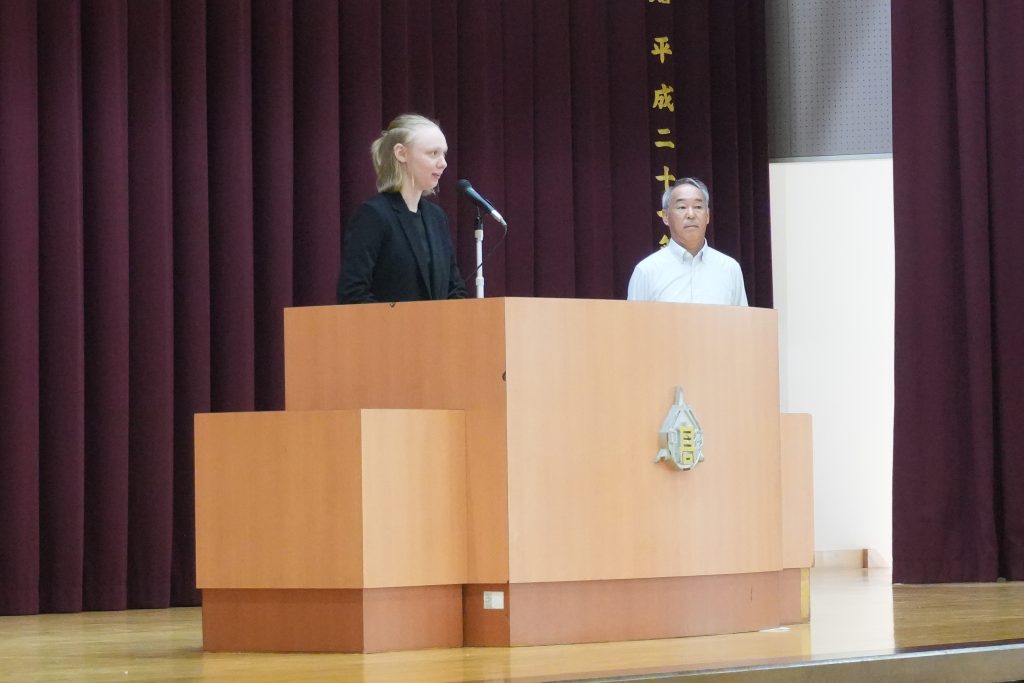 8月28日(木)、2学期の始業式を行いました。松島校長先生から、新学期の心構えについてお話がありました。また、英語の新しいALTジェシカ・カーコル先生の新任式も行われました。その後は、学校祭の色別集会・部門別活動もあり、学校祭に向けた準備が本格的に始まりました。