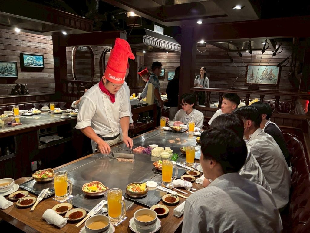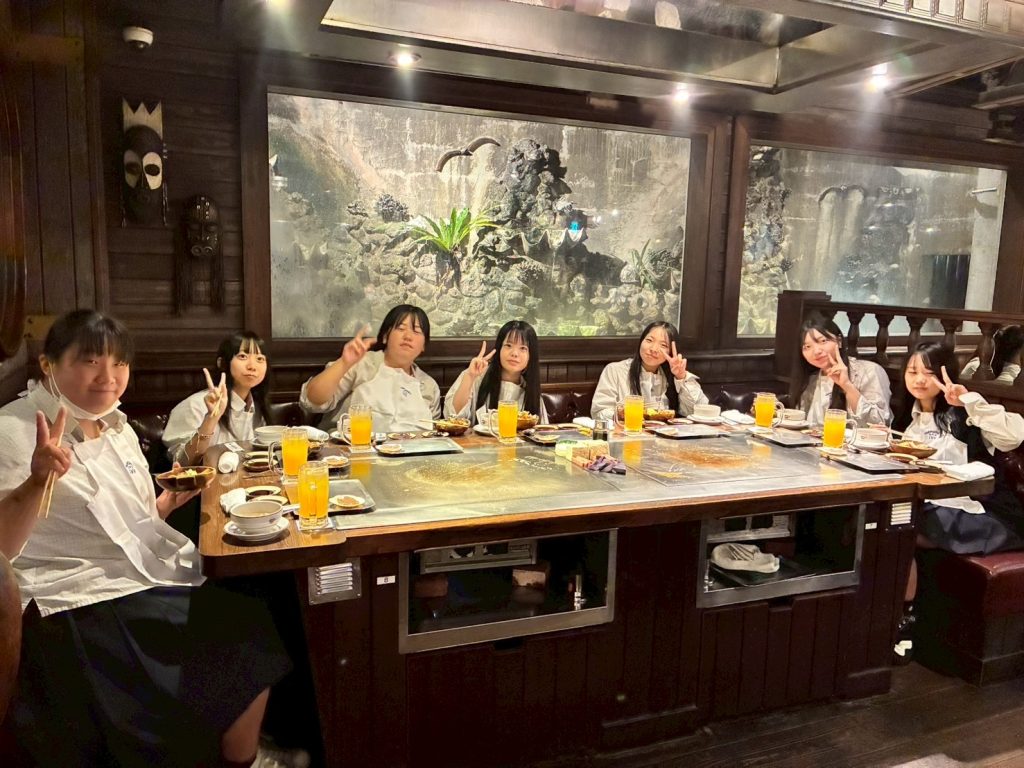 夜はキャプテンズインでステーキを食べました。目の前でシェフが見せるクッキングパフォーマンスに生徒たちは大盛り上がり。1日目の振り返りをしながら楽しくご飯を食べました。十分に睡眠をとり、明日も全力で楽しみましょう!