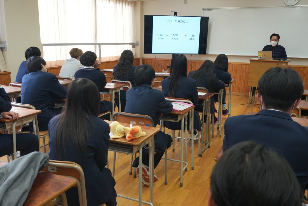1月19日(月)と21日(水)、3年生を対象に「租税教室」と「ビジネスマナー&スーツ着こなし講座」が行われました。