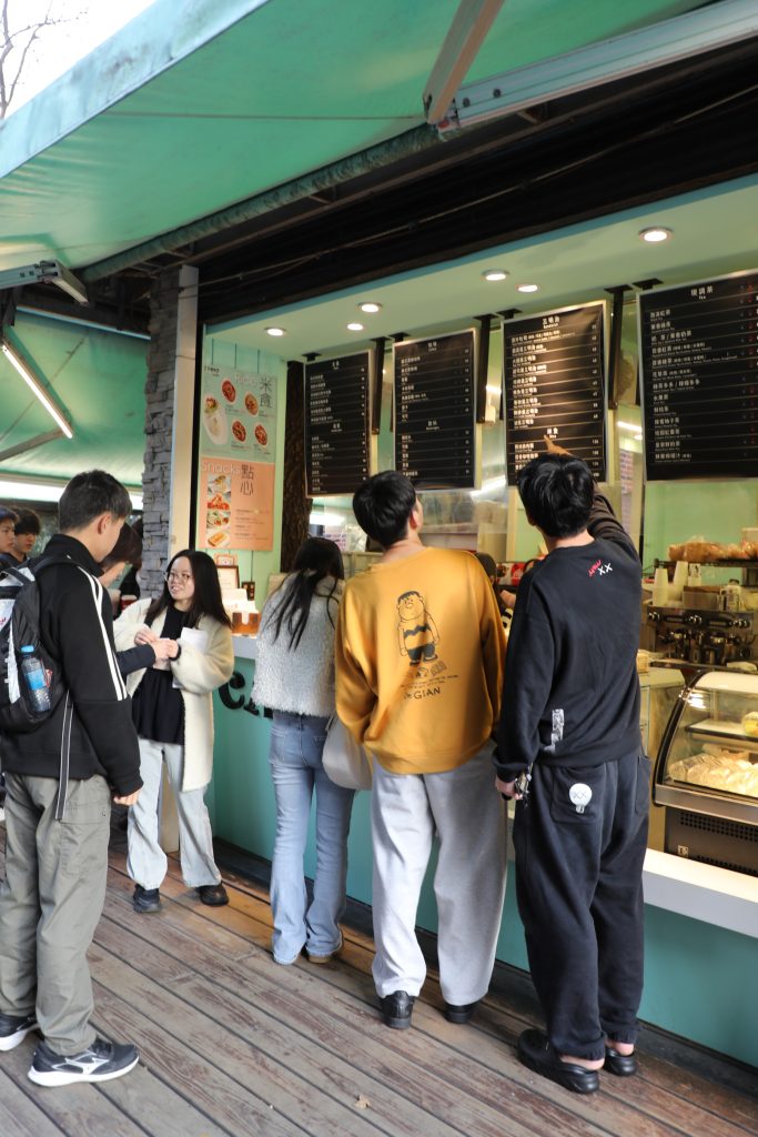 朝は7時に集合し、構内にあるカフェに朝ご飯を買いにいきました。ハンバーガーやサンドイッチなどが売られています。皆、中国語を使ったり、ジェスチャーを交えたりして食べたいもの・飲みたいものを注文していました。