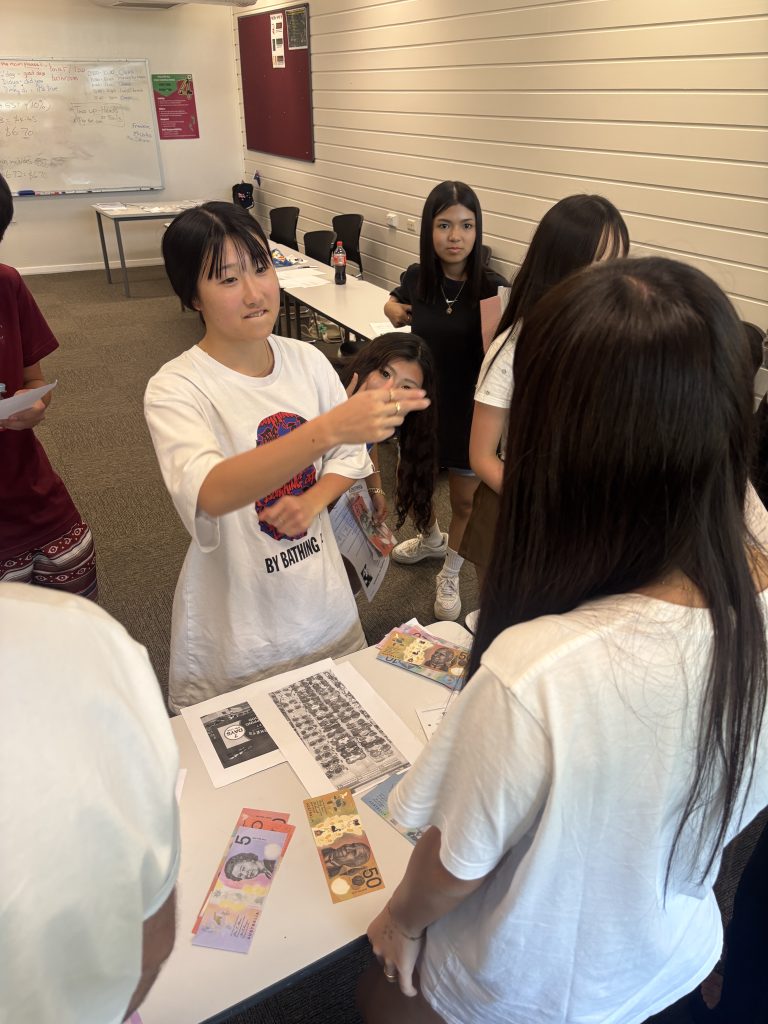 実際に声に出したり、お互いに会話練習をしたりして、挨拶の表現やオーストラリアの方言、オーストラリアの通貨や環境について学びました。